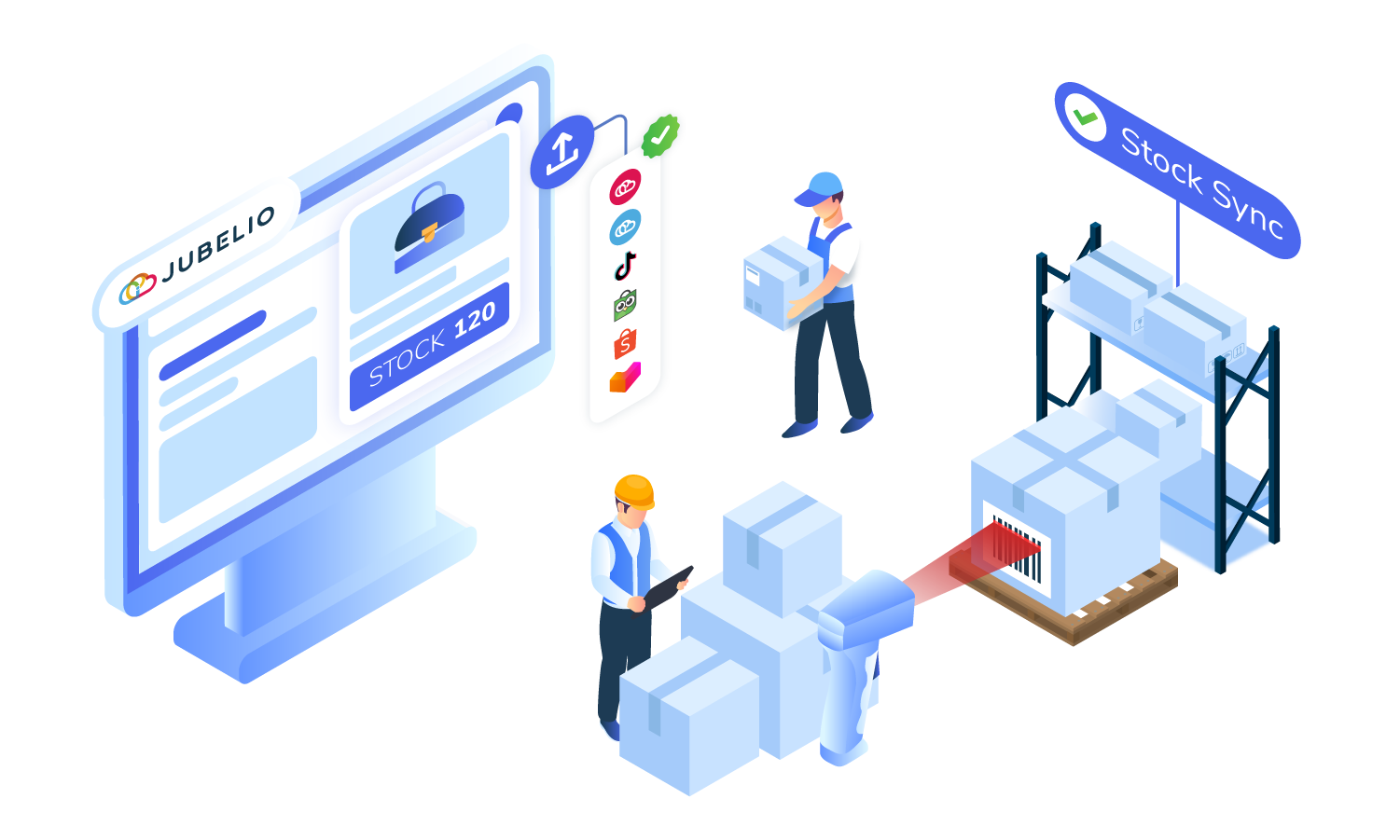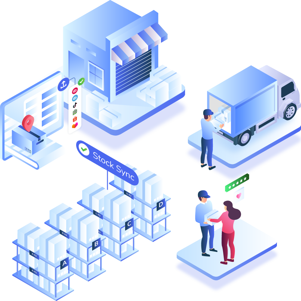 Sistem ini juga terhubung langsung dengan berbagai marketplace, sehingga setiap perubahan stok, pesanan, atau produk dapat terupdate secara otomatis.