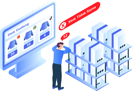 Banyak pesanan masuk dari Shopee, Tokopedia, dan TikTok Shop di waktu yang sama, tapi stok gudang terbatas dan tidak bisa memenuhi semuanya.