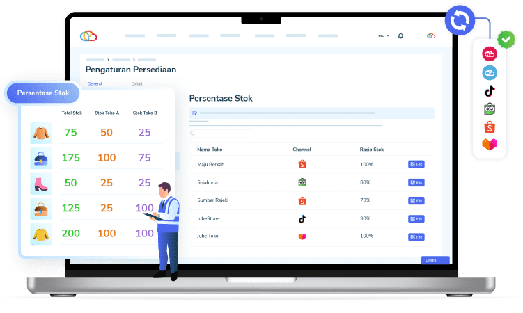 Cukup tentukan persentase stok yang ingin ditampilkan di masing-masing toko, tanpa harus membagi stok secara manual.