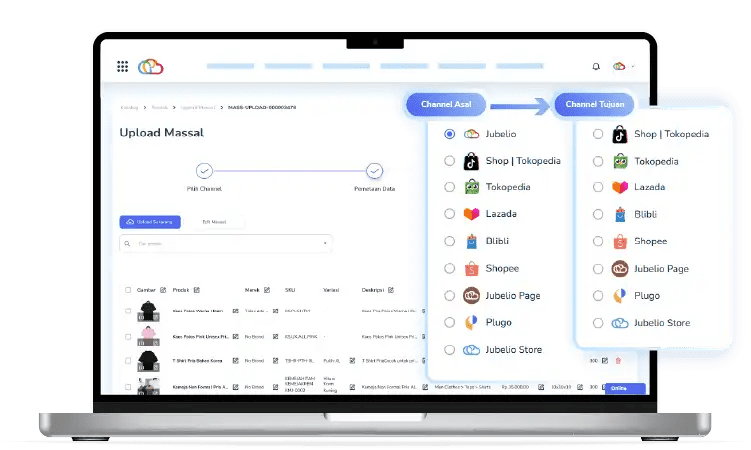 Dengan fitur Upload Massal (crosslisting) Jubelio, kamu bisa:
